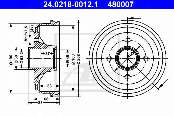 ATE 24.0218-0012.1 Тормозной барабан