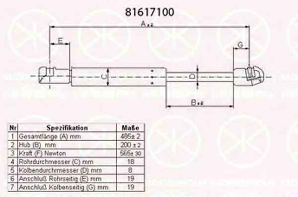 KLOKKERHOLM 81617100 Газовая пружина, крышка багажник